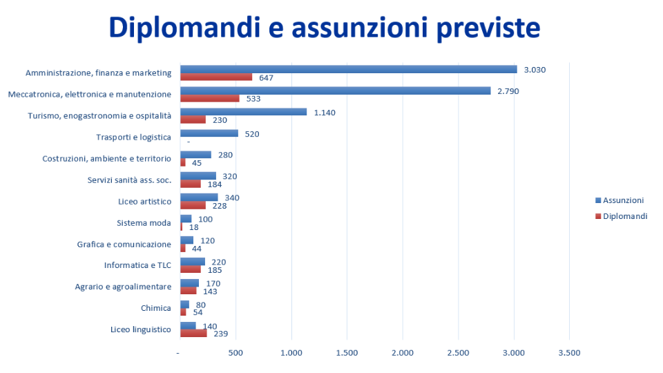 Secondo un’indagine su dati Sistema Excelsior e Annuario scolastico della provincia di Reggio Emilia, solo 533 diplomandi nel settore meccatronico ed elettronico fronteggiano quasi 2.800 assunzioni previste dalle aziende.